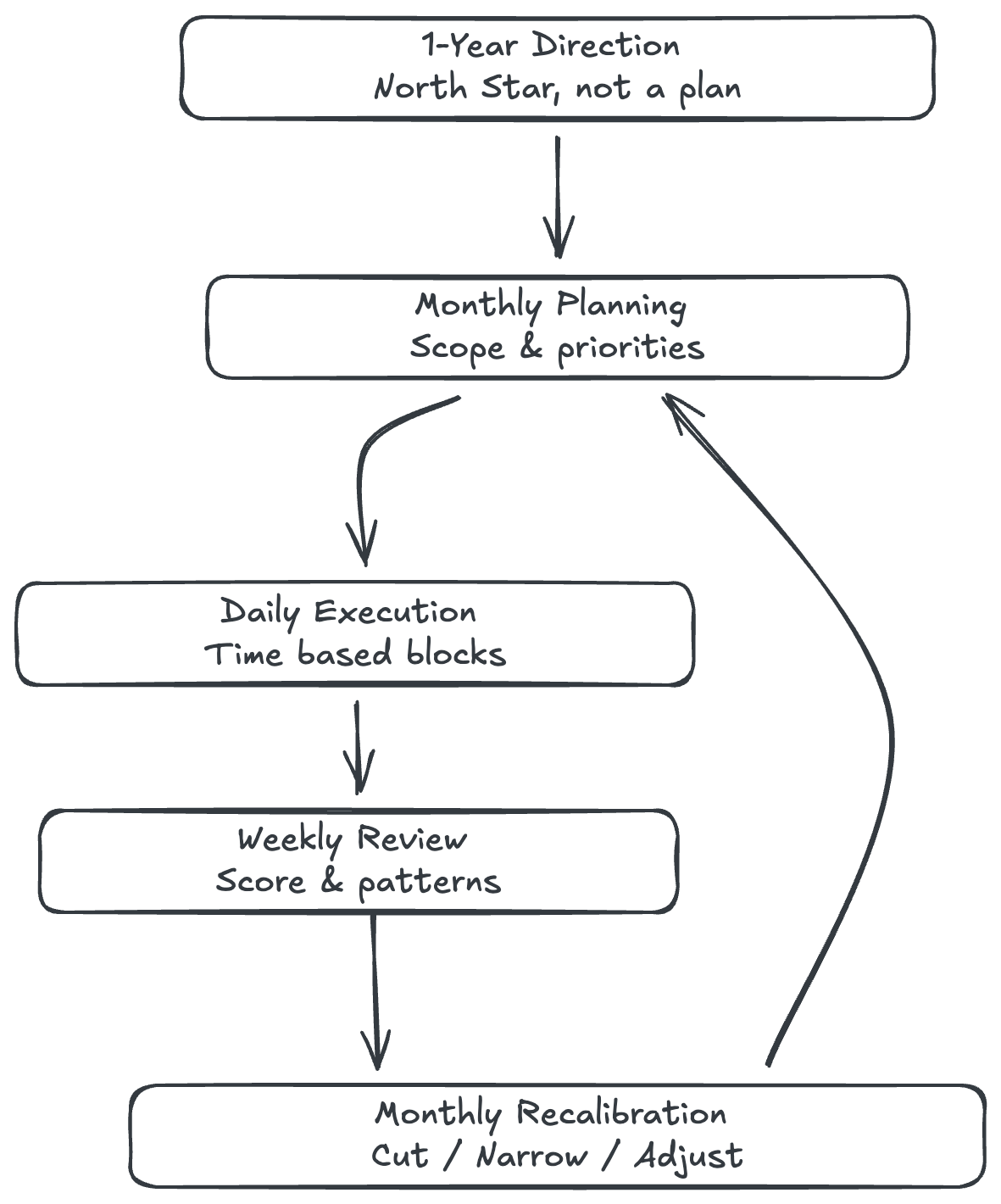 Instead, I capped my planning horizon to one year. Anything beyond that is direction, not a plan. The real work happens closer to the present.